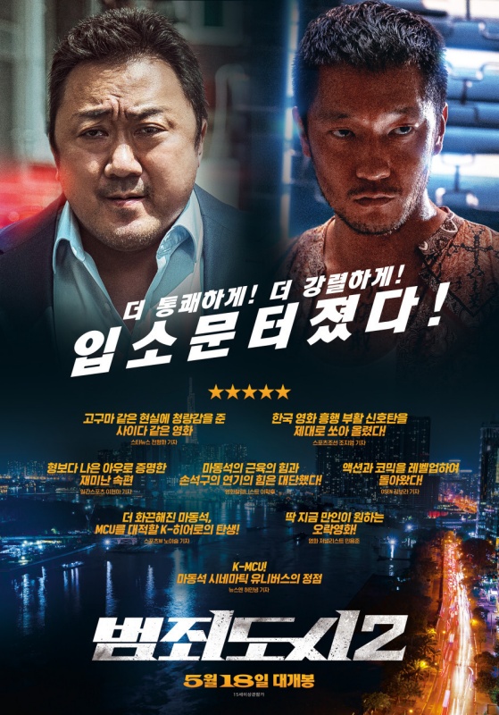 범죄도시의 후속작으로 돌아온 범죄도시 2는 1편과 마찬가지고 배우 마동석이 기획, 제작, 각색등 전반적인 것들을 거의 책임졌다고 합니다. 전편에 많은 사람들이 호평을 받아서 후속작 또한 기대를 엄청 받았는데 마동석이 1편보다 더 재미있게 만들었다고 자부심을 내 비쳤습니다. 특히 손석구라는 배우가 엄청난 인기를 실감할 수 있게 해 준 영화라고도 할 수 있습니다.