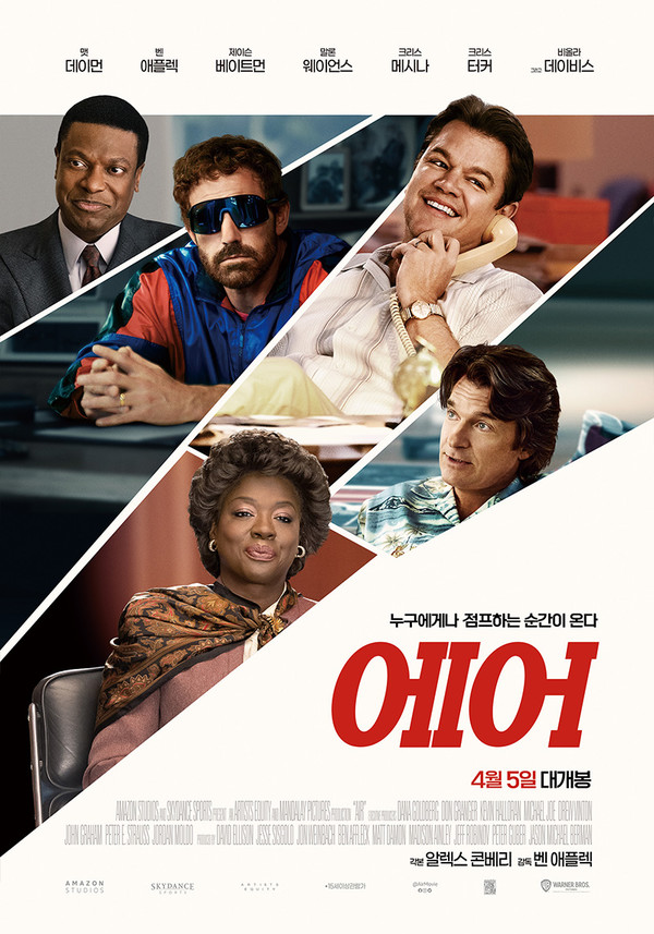 출연진을 소개하자면 맷 데이먼이 소니 바카로 역으로 나이키가 스카우트를 했으며 모두가 마이클 조던과의 계약을 반대했을 때 유일하게 추진한 인물이며 스포츠 마케터입니다. 벤 애플렉은 필 나이트 역으로 육상선수 출신의 나이키 창립자이고 직원들을 믿고 지원해 주는 자유분방한 리더입니다. 제이슨 베이트먼은 롭 스트라서 역으로 나이키 마케팅 임원 겸 소니의 상사로 아낌없는 지원과 조언을 해줍니다. 말론 웨이언스는 조지 래블링 역으로 소니의 친구이자 올림픽 농구팀 코치입니다. 크리스 메시나는 데이비드 포크 역으로 마이클 조건의 스포츠 에이전시 대표이고 크리스 터커는 하워드 화이트 역으로 나이키의 농구 부서 책임자입니다. 비올라 데이비스는 델로리스 조던 역으로 마이클 조던의 어머니이고 줄리어스 테넌은 제임스 조던 역으로 마이클 조던의 아버지입니다. 비올라 데이비스와 줄리어스 테넌은 실제로도 부부인데 이 영화에서도 부부 역할로 연기하였습니다.